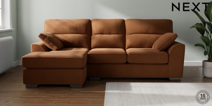 7.2.10 Buy Stamford Highback Medium Sofa Chaise - Left Hand Ripple Chenille Mid Rust Brown Large Square Angle - Gunmetal from the Next UK online shop Click here to use our accessible website