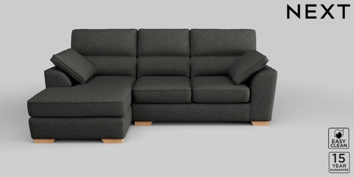 6.12.1 Buy Stamford Highback Medium Sofa Chaise - Left Hand Tweedy Blend Easy Clean Charcoal Grey Large Square Angle - Brushed Brass from the Next UK online shop Click here to use our accessible website