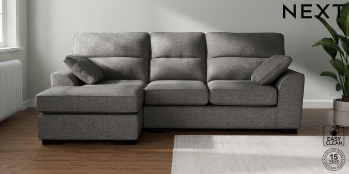 7.2.10 Buy Stamford Highback Medium Sofa Chaise - Left Hand Tweedy Blend Easy Clean Dark Grey Large Square Angle - Dark from the Next UK online shop Click here to use our accessible website