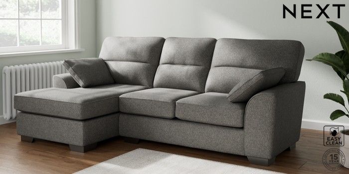 7.2.10 Buy Stamford Highback Medium Sofa Chaise - Left Hand Tweedy Blend Easy Clean Dark Grey Large Square Angle - Gunmetal from the Next UK online shop Click here to use our accessible website