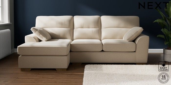 7.2.10 Buy Stamford Highback Medium Sofa Chaise - Left Hand Tweedy Blend Easy Clean Oyster Large Square Angle - Mid from the Next UK online shop Click here to use our accessible website