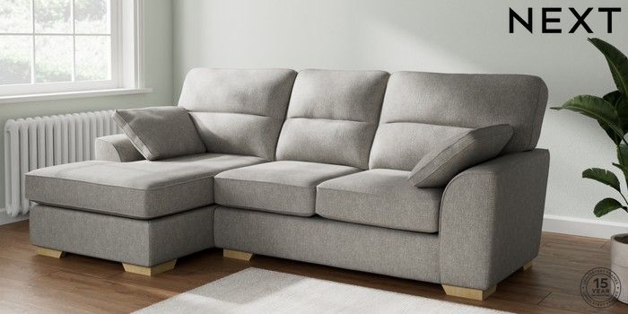 6.12.1 Buy Stamford Highback Medium Sofa Chaise - Left Hand Tweedy Chenille Mid Grey Large Square Angle - Light from the Next UK online shop Click here to use our accessible website