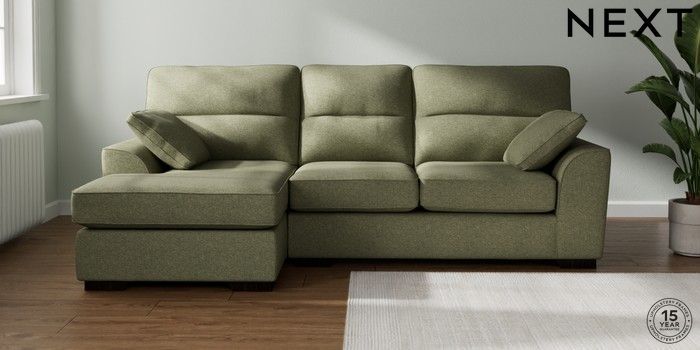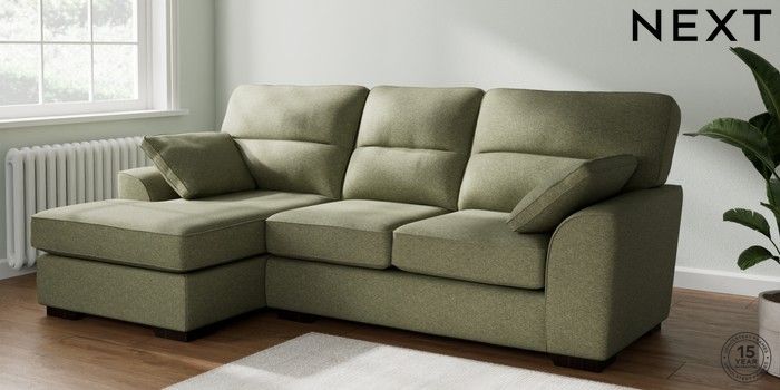 7.2.10 Buy Stamford Highback Medium Sofa Chaise - Left Hand Tweedy Chenille Mid Moss Green Large Square Angle - Dark from the Next UK online shop Click here to use our accessible website