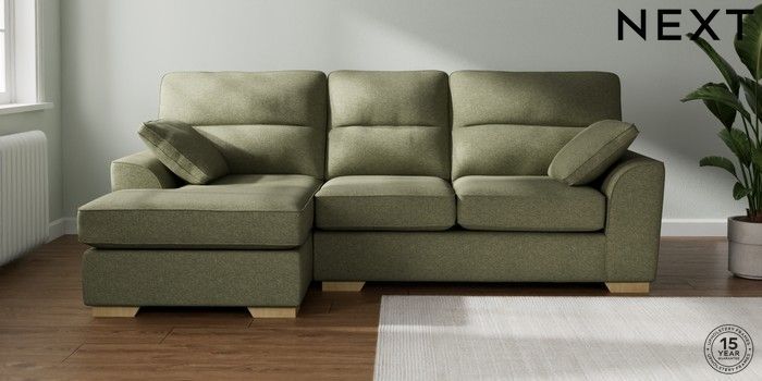 7.2.10 Buy Stamford Highback Medium Sofa Chaise - Left Hand Tweedy Chenille Mid Moss Green Large Square Angle - Light from the Next UK online shop Click here to use our accessible website