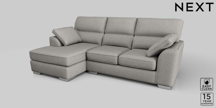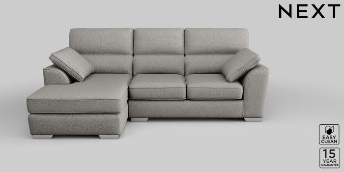 6.12.1 Buy Stamford Highback Medium Sofa Chaise - Left Hand Woven Chenille Easy Clean Light Grey Large Square Angle - Chrome Metal from the Next UK online shop Click here to use our accessible website