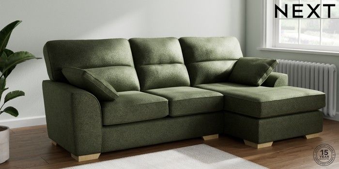7.2.6 Buy Stamford Highback Medium Sofa Chaise - Right Hand Boucle Chenille Dark Moss Green Large Square Angle - Light from the Next UK online shop Click here to use our accessible website