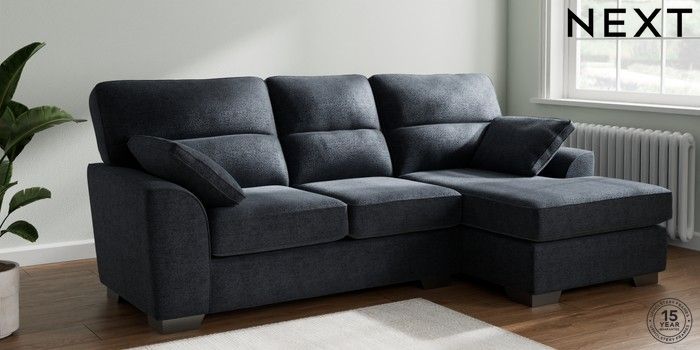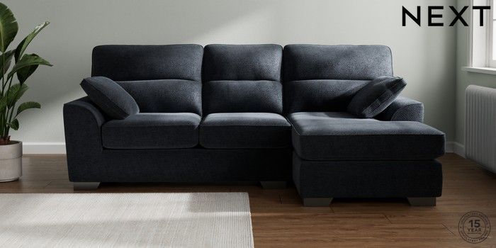 7.2.10 Buy Stamford Highback Medium Sofa Chaise - Right Hand Boucle Chenille Dark Slate Blue Large Square Angle - Gunmetal from the Next UK online shop Click here to use our accessible website