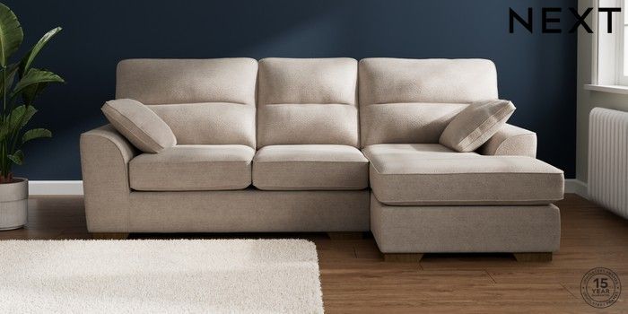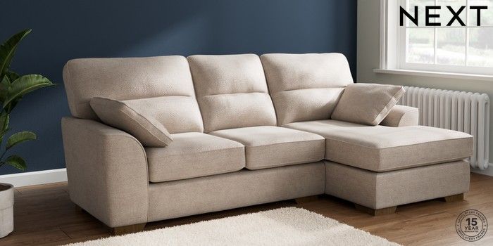 7.2.10 Buy Stamford Highback Medium Sofa Chaise - Right Hand Boucle Chenille Light Natural Large Square Angle - Mid from the Next UK online shop Click here to use our accessible website