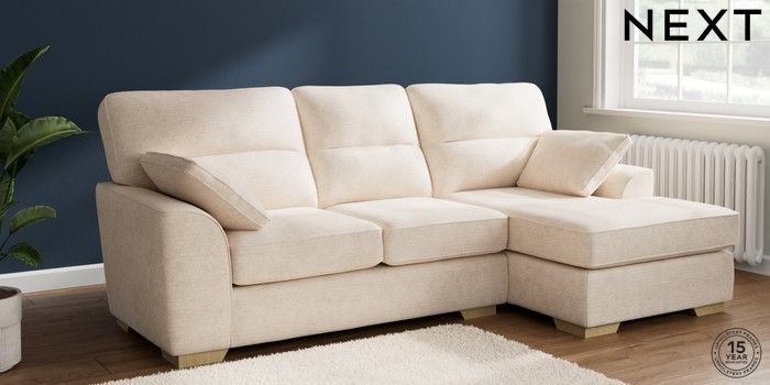 7.2.10 Buy Stamford Highback Medium Sofa Chaise - Right Hand Boucle Chenille Oyster Large Square Angle - Light from the Next UK online shop Click here to use our accessible website