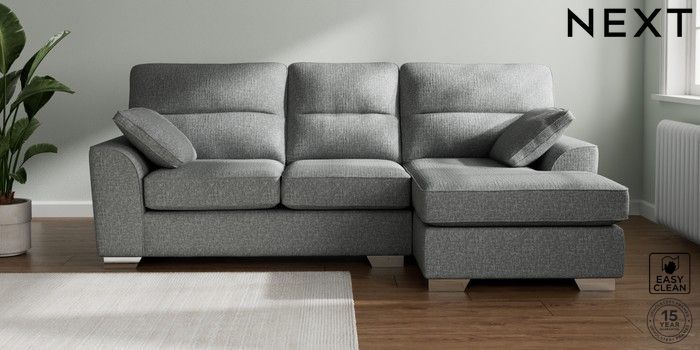 7.2.10 Buy Stamford Highback Medium Sofa Chaise - Right Hand Chunky Boucle Easy Clean Mid Grey Large Square Angle - Chrome Metal from the Next UK online shop Click here to use our accessible website