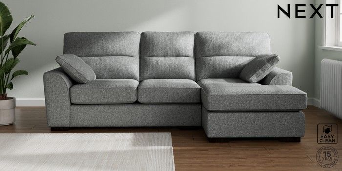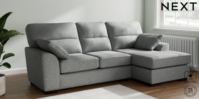 7.2.10 Buy Stamford Highback Medium Sofa Chaise - Right Hand Chunky Boucle Easy Clean Mid Grey Large Square Angle - Dark from the Next UK online shop Click here to use our accessible website