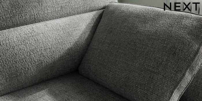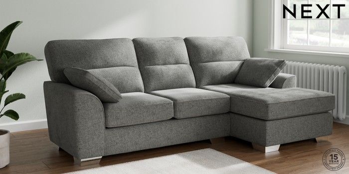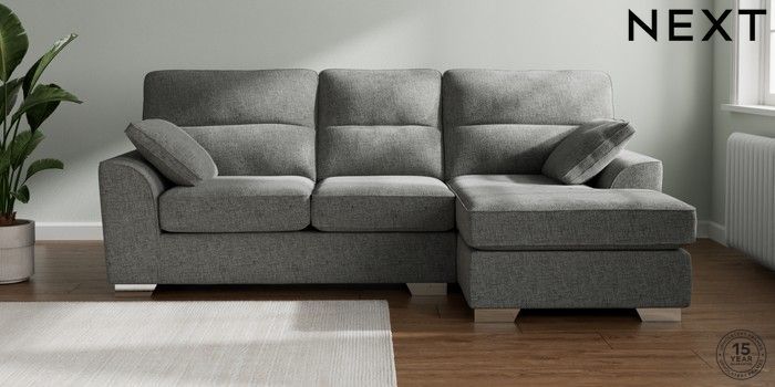 7.2.10 Buy Stamford Highback Medium Sofa Chaise - Right Hand Chunky Chenille Dark Grey Large Square Angle - Chrome Metal from the Next UK online shop Click here to use our accessible website