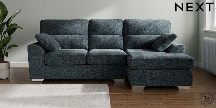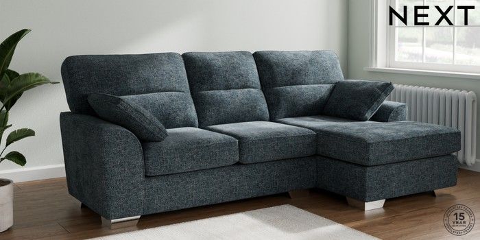 7.2.10 Buy Stamford Highback Medium Sofa Chaise - Right Hand Chunky Chenille Dark Navy Blue Large Square Angle - Chrome Metal from the Next UK online shop Click here to use our accessible website