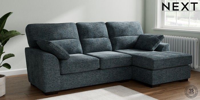 7.2.10 Buy Stamford Highback Medium Sofa Chaise - Right Hand Chunky Chenille Dark Navy Blue Large Square Angle - Dark from the Next UK online shop Click here to use our accessible website