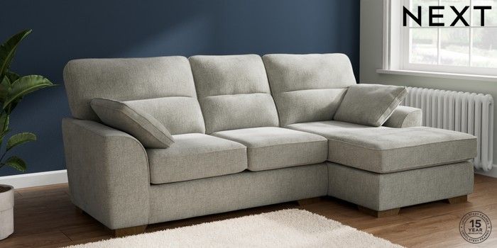 6.12.1 Buy Stamford Highback Medium Sofa Chaise - Right Hand Chunky Chenille Light Grey Large Square Angle - Mid from the Next UK online shop Click here to use our accessible website