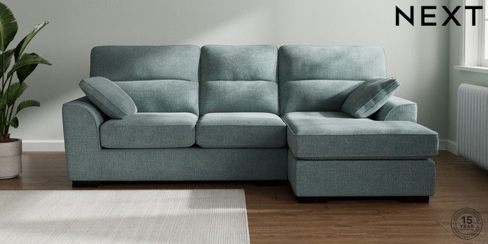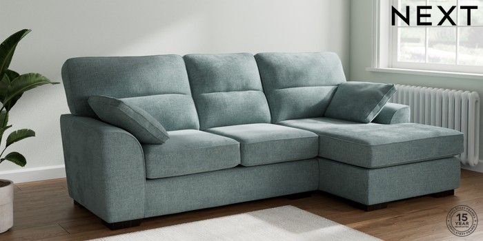 7.2.10 Buy Stamford Highback Medium Sofa Chaise - Right Hand Chunky Chenille Light Teal Green Large Square Angle - Dark from the Next UK online shop Click here to use our accessible website