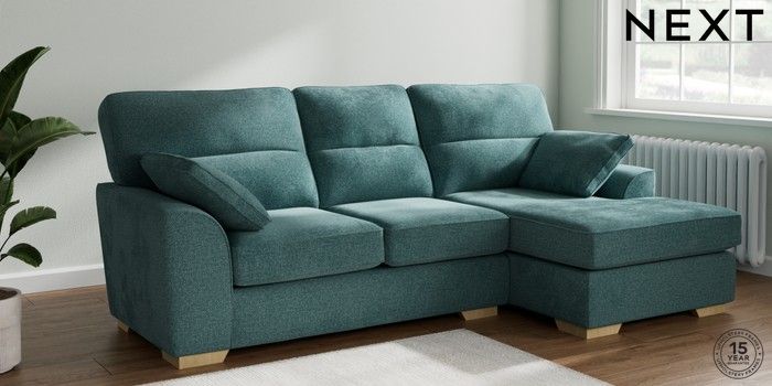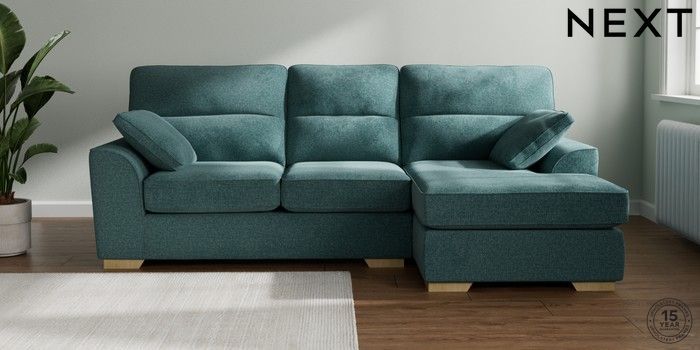 7.2.10 Buy Stamford Highback Medium Sofa Chaise - Right Hand Chunky Chenille Mid Teal Green Large Square Angle - Light from the Next UK online shop Click here to use our accessible website