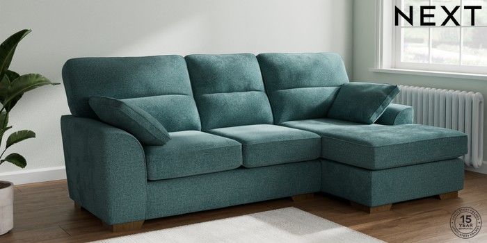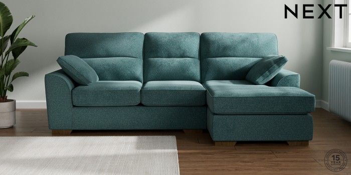 7.2.10 Buy Stamford Highback Medium Sofa Chaise - Right Hand Chunky Chenille Mid Teal Green Large Square Angle - Mid from the Next UK online shop Click here to use our accessible website