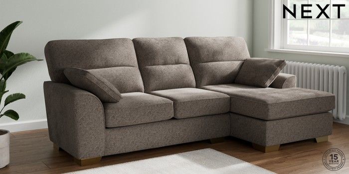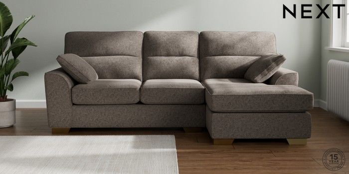 7.2.10 Buy Stamford Highback Medium Sofa Chaise - Right Hand Chunky Chenille Mink Brown Large Square Angle - Brushed Brass from the Next UK online shop Click here to use our accessible website