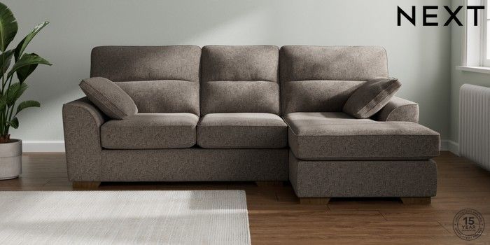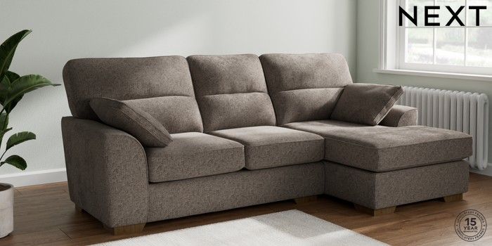 7.2.10 Buy Stamford Highback Medium Sofa Chaise - Right Hand Chunky Chenille Mink Brown Large Square Angle - Mid from the Next UK online shop Click here to use our accessible website