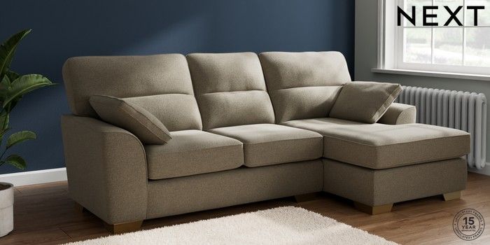 7.2.10 Buy Stamford Highback Medium Sofa Chaise - Right Hand Chunky Marl Light Olive Green Large Square Angle - Brushed Brass from the Next UK online shop Click here to use our accessible website
