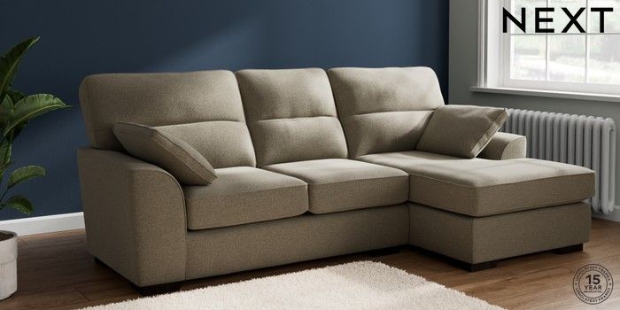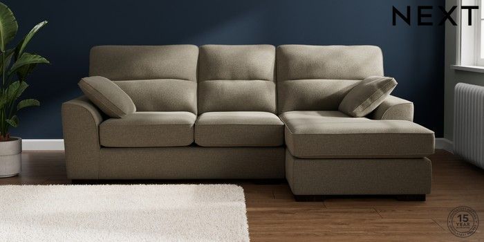7.2.10 Buy Stamford Highback Medium Sofa Chaise - Right Hand Chunky Marl Light Olive Green Large Square Angle - Dark from the Next UK online shop Click here to use our accessible website