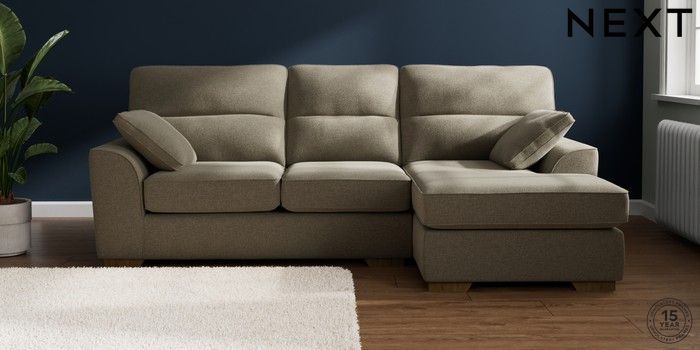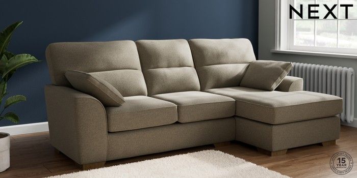 7.2.10 Buy Stamford Highback Medium Sofa Chaise - Right Hand Chunky Marl Light Olive Green Large Square Angle - Mid from the Next UK online shop Click here to use our accessible website
