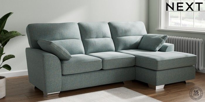 7.2.6 Buy Stamford Highback Medium Sofa Chaise - Right Hand Chunky Marl Mid Blue Large Square Angle - Chrome Metal from the Next UK online shop Click here to use our accessible website
