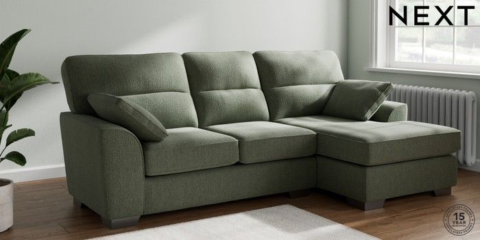 7.2.10 Buy Stamford Highback Medium Sofa Chaise - Right Hand Chunky Texture Mid Forest Green Large Square Angle - Gunmetal from the Next UK online shop Click here to use our accessible website