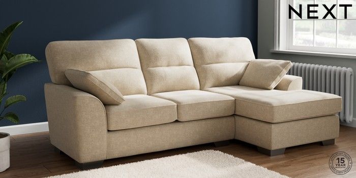 7.2.10 Buy Stamford Highback Medium Sofa Chaise - Right Hand Chunky Weave Cream Large Square Angle - Gunmetal from the Next UK online shop Click here to use our accessible website