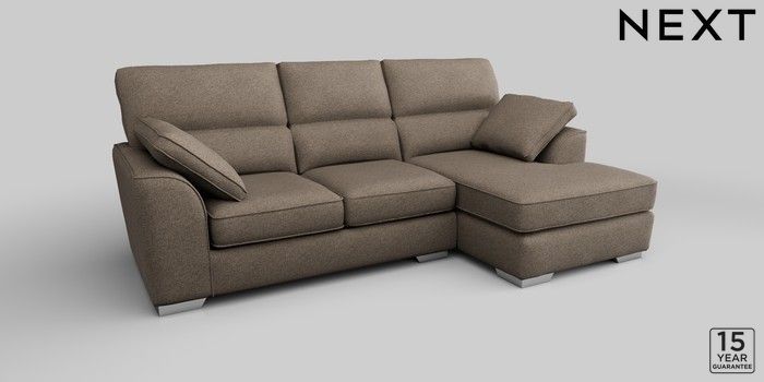 6.12.1 Buy Stamford Highback Medium Sofa Chaise - Right Hand Chunky Weave Dark Natural Large Square Angle - Chrome Metal from the Next UK online shop Click here to use our accessible website