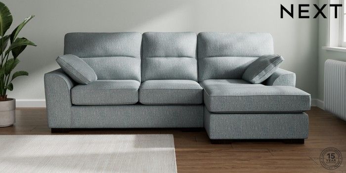 7.2.10 Buy Stamford Highback Medium Sofa Chaise - Right Hand Chunky Weave Mid Blue Large Square Angle - Dark from the Next UK online shop Click here to use our accessible website