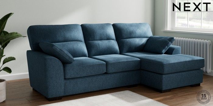 7.2.10 Buy Stamford Highback Medium Sofa Chaise - Right Hand Cotswold Chenille Dark Blue Large Square Angle - Dark from the Next UK online shop Click here to use our accessible website