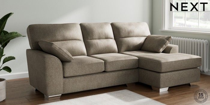 7.2.6 Buy Stamford Highback Medium Sofa Chaise - Right Hand Cotswold Chenille Mid Mink Brown Large Square Angle - Chrome Metal from the Next UK online shop Click here to use our accessible website