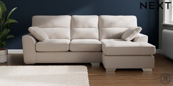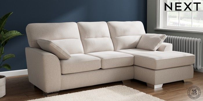 7.2.10 Buy Stamford Highback Medium Sofa Chaise - Right Hand Cotswold Chenille Oyster Large Square Angle - Chrome Metal from the Next UK online shop Click here to use our accessible website
