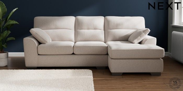 7.2.10 Buy Stamford Highback Medium Sofa Chaise - Right Hand Cotswold Chenille Oyster Large Square Angle - Gunmetal from the Next UK online shop Click here to use our accessible website