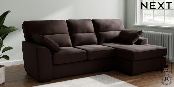 7.2.10 Buy Stamford Highback Medium Sofa Chaise - Right Hand Fine Chenille Easy Clean Chocolate Brown Large Square Angle - Dark from the Next UK online shop Click here to use our accessible website