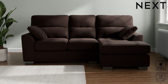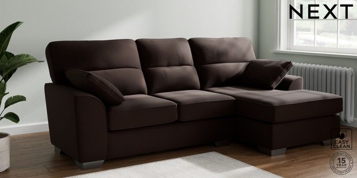 7.2.10 Buy Stamford Highback Medium Sofa Chaise - Right Hand Fine Chenille Easy Clean Chocolate Brown Large Square Angle - Gunmetal from the Next UK online shop Click here to use our accessible website