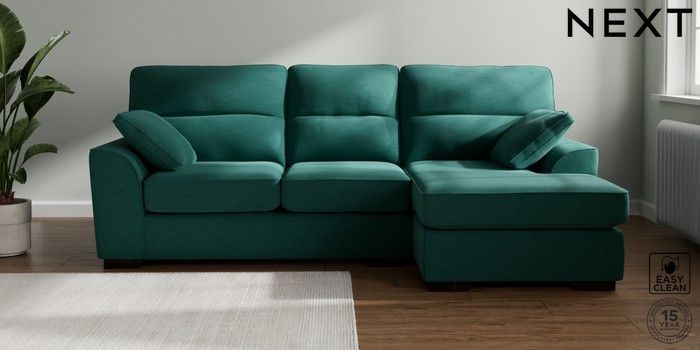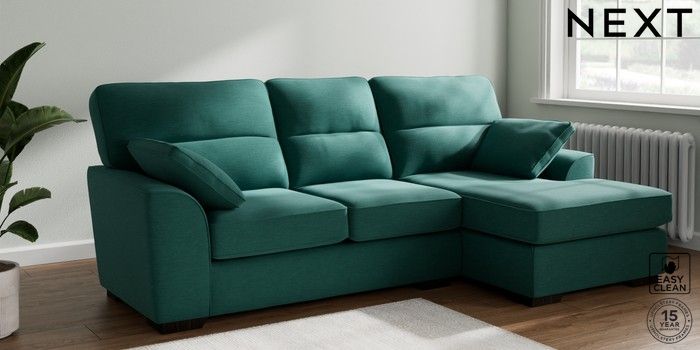 7.2.10 Buy Stamford Highback Medium Sofa Chaise - Right Hand Fine Chenille Easy Clean Dark Juniper Green Large Square Angle - Dark from the Next UK online shop Click here to use our accessible website
