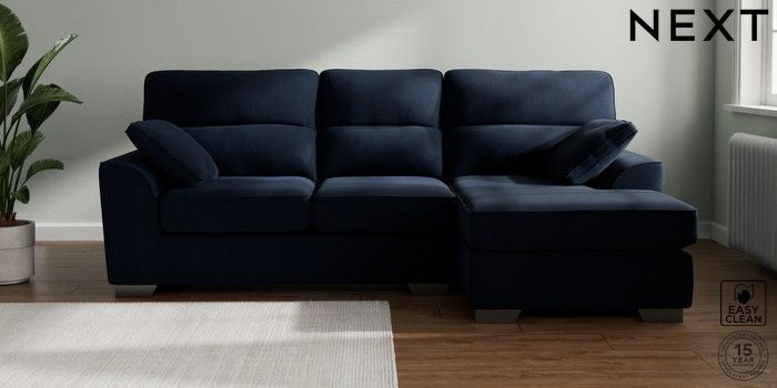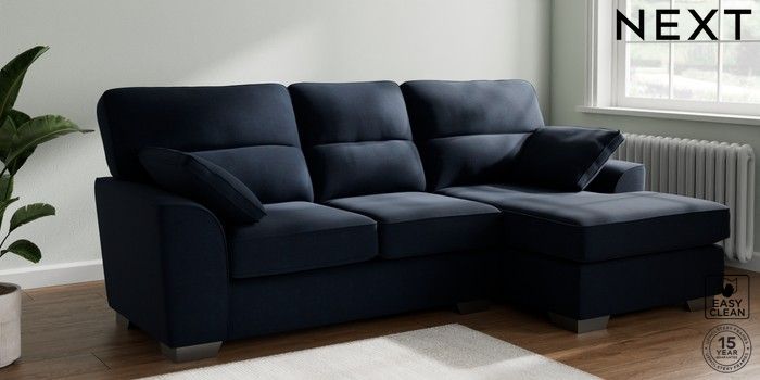 7.2.10 Buy Stamford Highback Medium Sofa Chaise - Right Hand Fine Chenille Easy Clean Dark Navy Blue Large Square Angle - Gunmetal from the Next UK online shop Click here to use our accessible website
