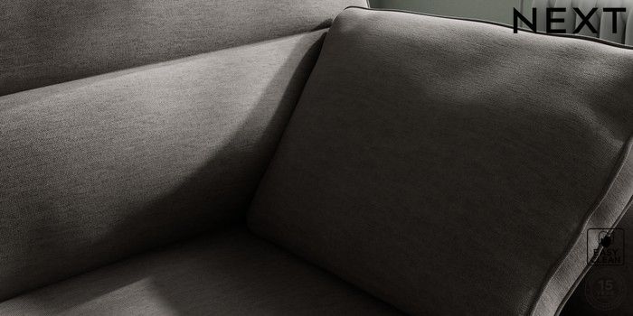 7.2.10 Buy Stamford Highback Medium Sofa Chaise - Right Hand Fine Chenille Easy Clean Dark Smoke Grey Large Square Angle - Brushed Brass from the Next UK online shop Click here to use our accessible website