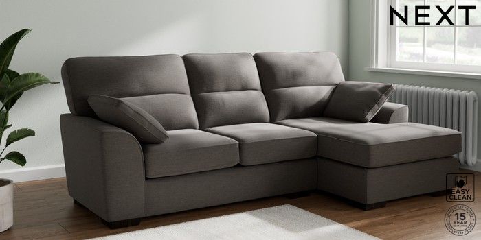 6.12.1 Buy Stamford Highback Medium Sofa Chaise - Right Hand Fine Chenille Easy Clean Dark Smoke Grey Large Square Angle - Dark from the Next UK online shop Click here to use our accessible website
