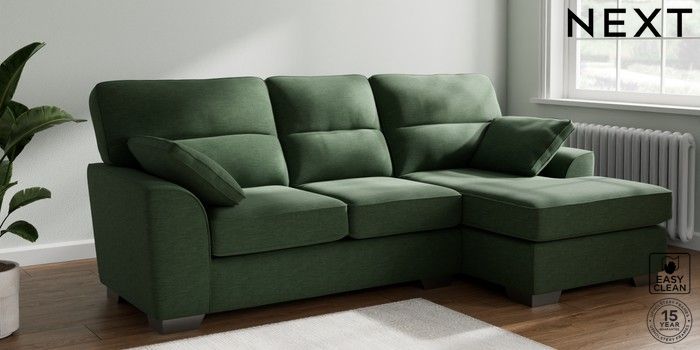 7.3.1 Buy Stamford Highback Medium Sofa Chaise - Right Hand Fine Chenille Easy Clean Mid Khaki Green Large Square Angle - Gunmetal from the Next UK online shop Click here to use our accessible website