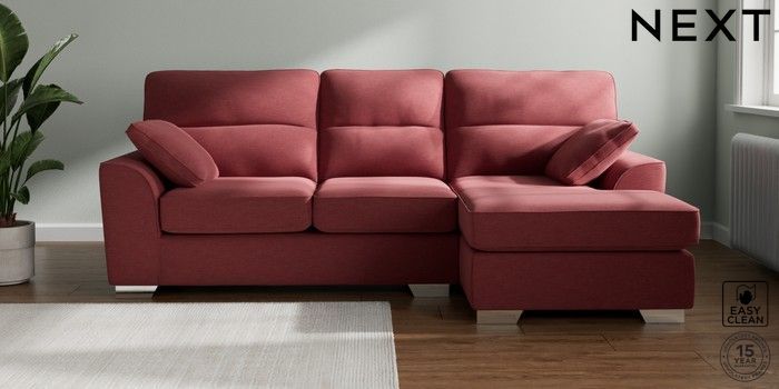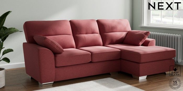 7.2.10 Buy Stamford Highback Medium Sofa Chaise - Right Hand Fine Chenille Easy Clean Mid Pink Large Square Angle - Chrome Metal from the Next UK online shop Click here to use our accessible website
