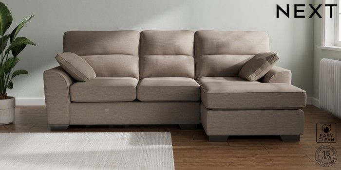 7.3.1 Buy Stamford Highback Medium Sofa Chaise - Right Hand Fine Chenille Easy Clean Mid Taupe Brown Large Square Angle - Gunmetal from the Next UK online shop Click here to use our accessible website