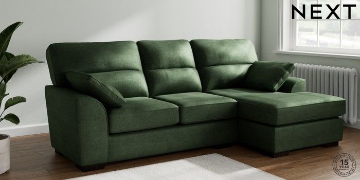 7.2.10 Buy Stamford Highback Medium Sofa Chaise - Right Hand Luxe Chenille Dark Green Large Square Angle - Dark from the Next UK online shop Click here to use our accessible website