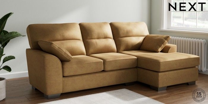 7.2.6 Buy Stamford Highback Medium Sofa Chaise - Right Hand Luxe Chenille Honey Yellow Large Square Angle - Gunmetal from the Next UK online shop Click here to use our accessible website