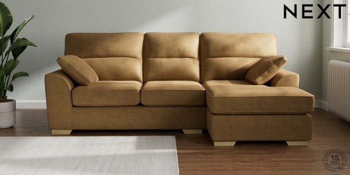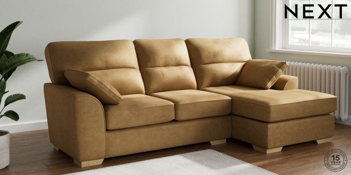 7.2.6 Buy Stamford Highback Medium Sofa Chaise - Right Hand Luxe Chenille Honey Yellow Large Square Angle - Light from the Next UK online shop Click here to use our accessible website
