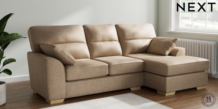 6.12.1 Buy Stamford Highback Medium Sofa Chaise - Right Hand Luxe Chenille Mid Camel Beige Large Square Angle - Light from the Next UK online shop Click here to use our accessible website