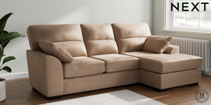 7.2.10 Buy Stamford Highback Medium Sofa Chaise - Right Hand Luxe Chenille Mid Natural Large Square Angle - Dark from the Next UK online shop Click here to use our accessible website